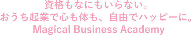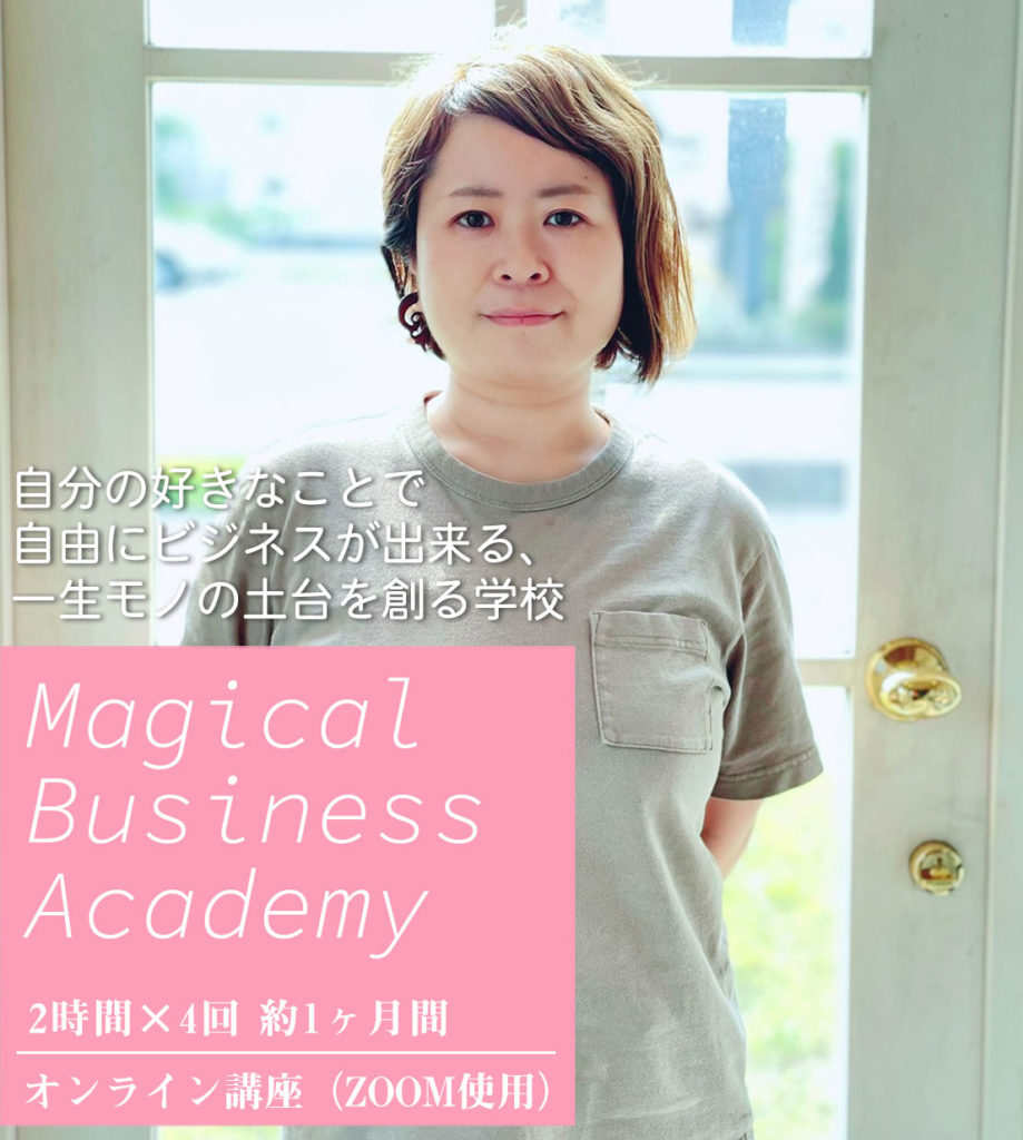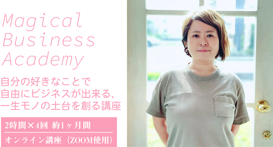 おうちに居ながら仕事をしたい 自分の好きな事を仕事にしたい 子どもや家族と過ごす時間を増やしたい お金も心も、もっと自由になりたい 自分には何もないと思っている 自分でビジネスをしてみたい パートやアルバイトをする自分にしっくりこない 毎日笑顔でいたい コロナが始まり家族との時間の大切さや、自分に備わってる本来の才能や個性を大事にしよう!そんな事がじわじわと叫ばれる時代になってきました。「本当のワタシ」を生かせる時代だからこそ、心も体も自由になれる一つの方法として、私は「自分ビジネス」という生き方をお伝えしています。それに私は信じているんです。すべての人に生きる意味とか才能とか、目的があるってことを。そういう自分探しとか一歩進んでみたいなーとか思うと、なぜか人は資格を取りに行ってしまう。そこからスキルコレクターになり、結局どうして良いか分からない。悲しいことに現実的に落とし込みが出来ない人が多いんです。実は資格を取らなくても一歩踏み出す方法はもちろん、本当のやるべきことに気づくことが出来ます。その気づきのヒントは、自分を大切にすること。今までの日本社会では「人のために頑張ること」を大切にしようと、強く教えられてきました。でも、なんか変だなって感じたことはありませんか?一番大切な大切な「わたし」を置き去りにして、人のために頑張る。気がつけばこう思う。「あれ、私って何が楽しいんだったけ??」「何のために仕事してるんだっけ??」「何のために、生きてるんだっけ??」小さな「なんか変だな…」の声に耳を傾けてみると、「本当はこうして欲しかったのに!」「本当はこうしたかったのに!」私の中にある本当の本当の生き方を、ビジネスを通して現実的に叶える、1ヶ月間の学校です。 Magical Business Academy(以下MBA)では、自由に生きたいあなたの一歩を応援するために、ビジネスの土台作りはもちろん魔法にかかったように一歩が踏み出せる!そんな特別な仕掛けがしてあります。 MBAでは「本当の自分の願い」を大切にしています。なぜなら、願いはすべてのエネルギーの源となるからです。願いは原動力です。願いがあるからお金がほしいと思えます。やる気が無いときも、願いに繋がるだけで、マグマのような原動力が湧いてきます。なので、MBAでは「本当の本当に生きたい理想の私になること」を大切にしています。 1グループの参加人数は最大5人の少人数制となっています。みんな同じような志を持った仲間たち。仲間の存在で頑張れる!という方も安心できる環境です。またMBAでは応援を強制していません。自分が心地いい関わり方で参加することが出来ます。 MBAでは「自分」を受け入れ、大切にすることをお伝えしています。たくさんお金を頂くことが出来るようになっても、無理をしてしまっては、誰も笑顔になりません。あなたがあなたらしくいられる…そんなビジネスってなんだろう?本当にやりたい事ってなんだっけ??ビジネスを学ぶのに、なんだか暖かくて、自分を大切に出来る一ヶ月です。 工藤正子(くどうまさこ) ビジネスコンサルタント1986年東京都生まれ。埼玉県在住。2歳娘の母。主に法人をメインにマーケティングのノウハウや、マインドセットなどを伝えている他、自己受容に関する講演活動を行う。保育士と幼稚園教諭の資格を持ちながら、システムエンジニアやWebデザイナー、営業、物販、障害者・児支援に従事するなど異色の経歴を持つ。21歳~32歳まで躁うつ病で入退院を繰り返し、大量の投薬治療を行いながら闘病生活を送る。障害者手帳2級を取得し、障害者年金をもらいながら生活を送る時期もあったが、2018年妊娠を期に断薬。壮絶な離脱症状に苦しんだ末、出産を経て「本当の自分を生きる」ことを決意。2016年に物販ビジネスで起業し、2020年コンサルティング業を開始。サポート人数は300人を超える。2021年7月に出版した鬱病克服までの体験を書いた著書「鬱を辞めたはなし。」はAmazonランキング5部門にて1位を獲得。「誰もが本当に生きたい人生を送ることが出来る世界を創る」というミッションに向かって、活動の幅を広げている。座右の銘はEverything’s gonna be alright. 20代Nさん2歳双子ママ 在宅で仕事をしてみたいけど、何からはじめたらいいのか迷っていました。また、商品を出すにしても、自分より優れてる人が出す商品に勝る点があるのか悩んでいました。スキル無し、会社員以外の仕事経験なしだったので、まず講座についていけるかどうかが不安でしたが、受けてみると、いきなり商品を作るではなく、得意なこと、やりたい事から順序立てて商品を作るので、ビジネスを考えた事のない初心者でも取り組める内容になっていました。時間は短いのに内容はぐぐっと詰まっていました。難しい話はなく、身近な事例に置き換えて話してくれるので、ひと時も飽きずに楽しく受けることが出来ました。授業を通して具体的な商品設計が出来上がったので、その内